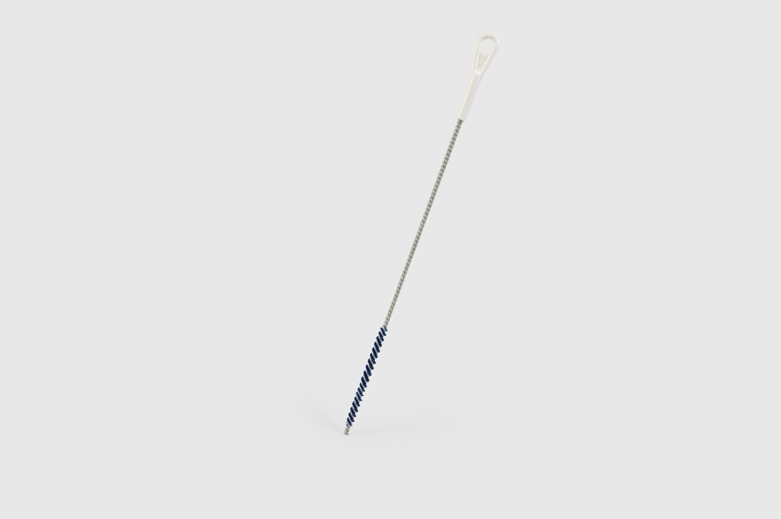 - 10mmø x 120mm (400mm overall) Twisted in wire tube brush, made with mild steel galvanized wire, filled with Polyester PBT, blue only fitted with white Polypropylene handle.
