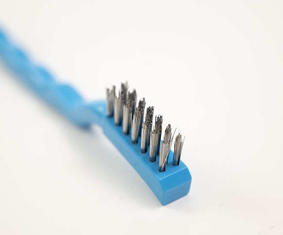 • This tooth brush sized brush is good for detailed work, tough burnt on deposits and cleaning machinery parts. This brush has a small chisel-edged tip. Rust proof.