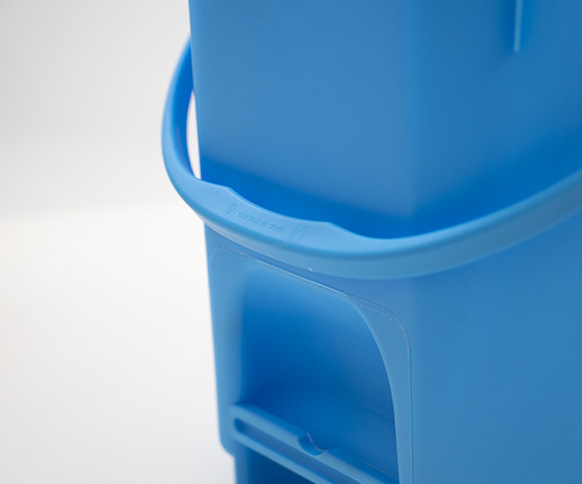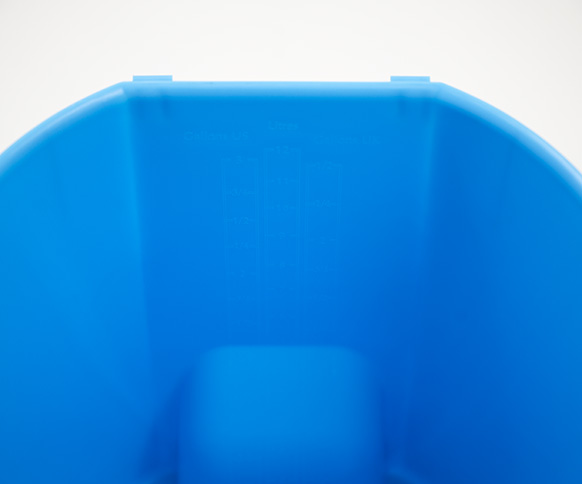- The bucket is base banded for durability and stability, and has a splash free lip and convenient base hold for easy pouring. The bucket may be stored up upside down using our HH2 wall hanger.