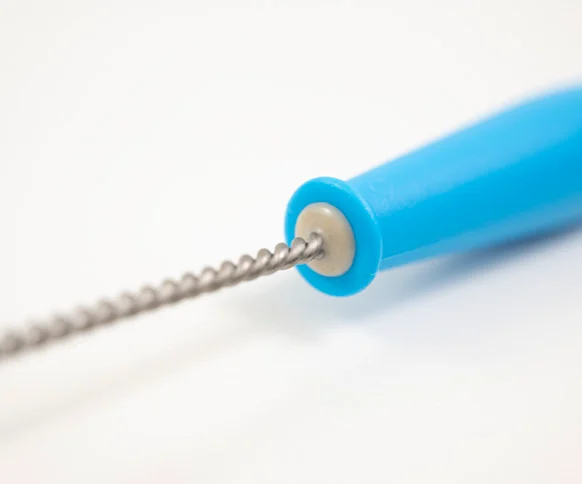 - 50mmØ medium Polyester twisted in stainless steel wire brush, with plastic handle.
