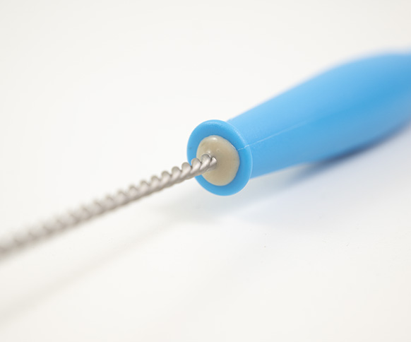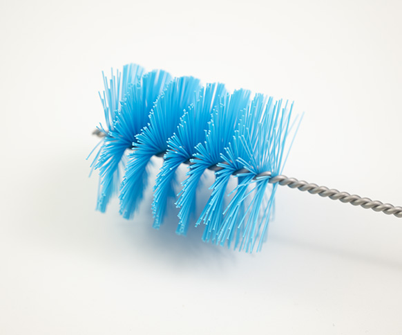 - 64mmØ medium Polyester twisted in stainless steel wire brush, with plastic handle.